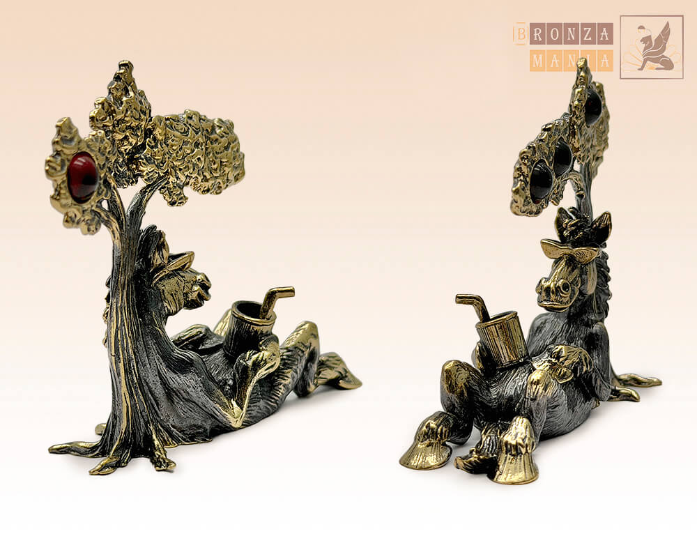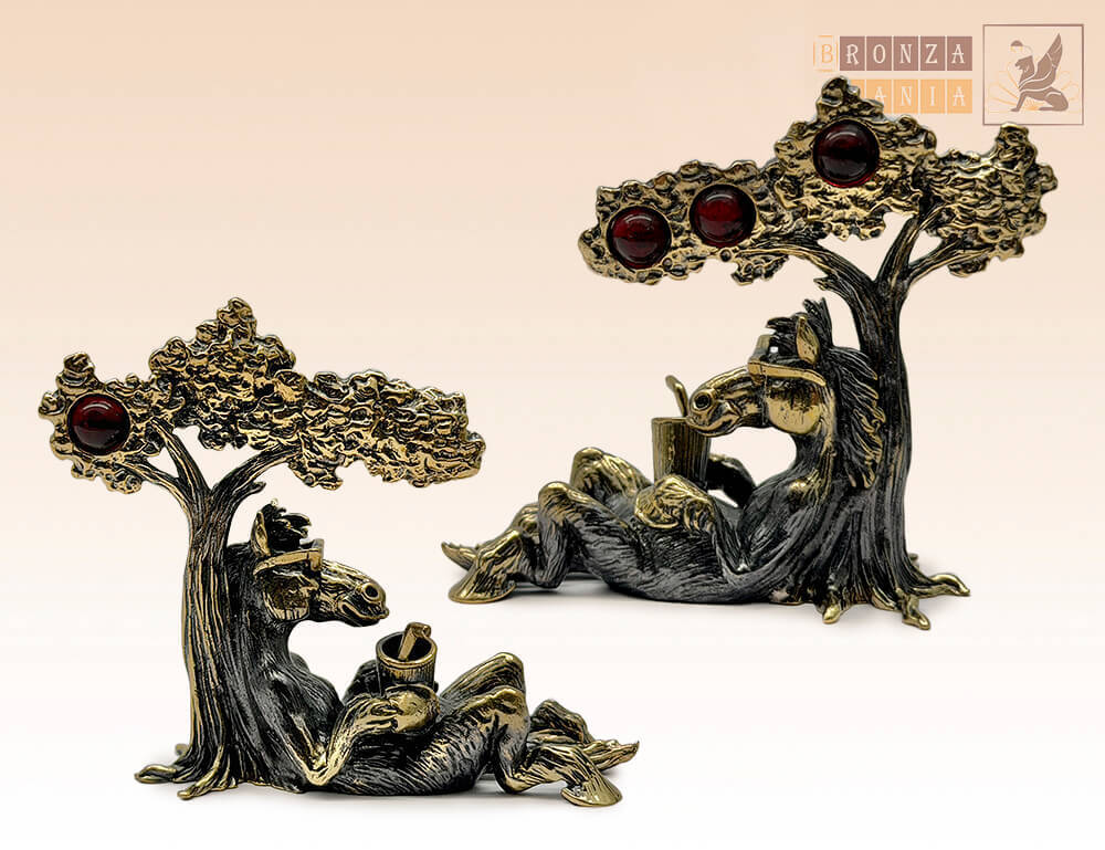 Ироничная бронзовая композиция, воплощающая философию беззаботного ожидания удачи. Фигурка изображает коня, расслабленно расположившегося под деревом в предвкушении, когда вкусный плод сам упадёт прямо в копыта. Это художественное переосмысление идеи «все само придет», поданное с юмором и лёгкой самоиронией.Для кого подойдёт