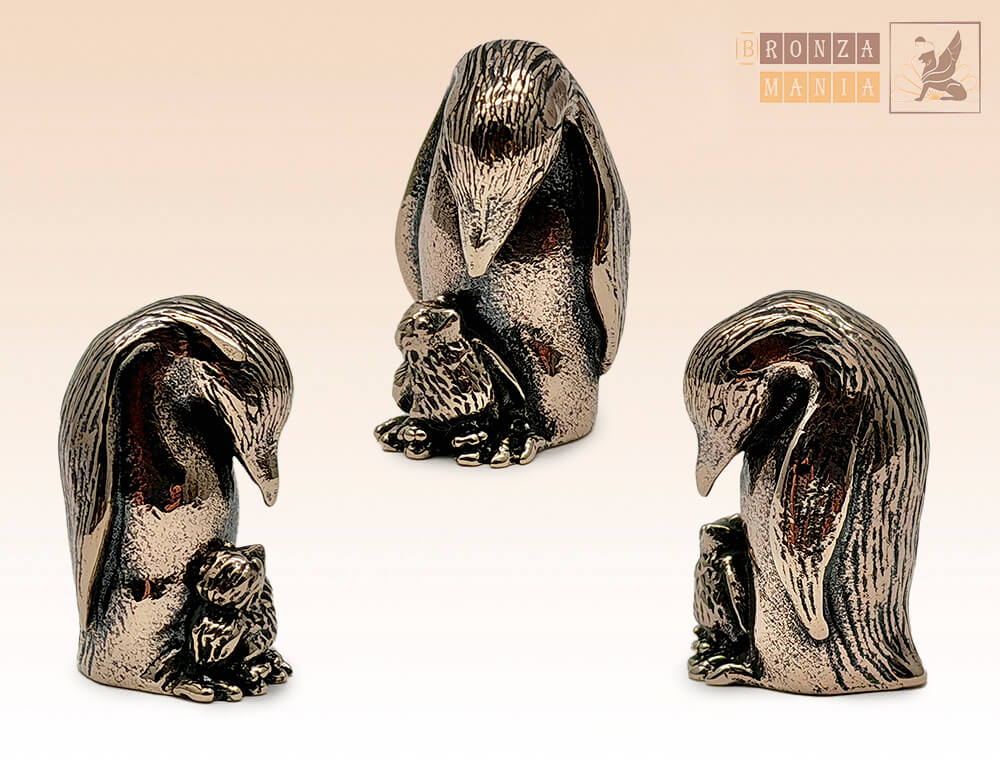 Трогательная бронзовая фигурка пингвина, оберегающего своего птенца, - изысканный элемент декора для дома, офиса или коллекции.